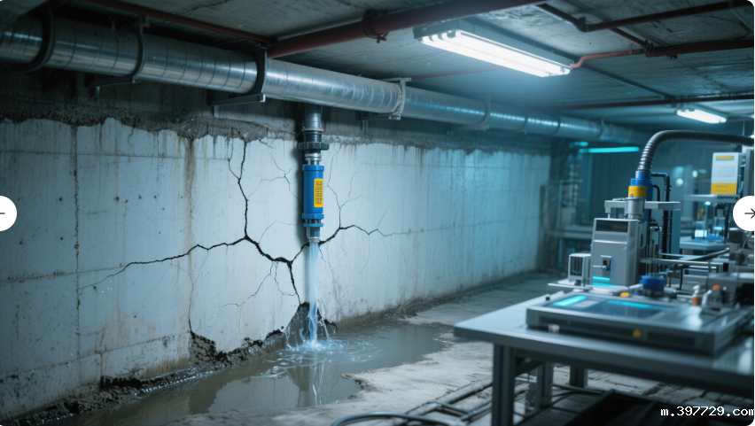 项目挑战:地下水位高(-3m),混凝土结构存在0.1-0.3mm微裂缝。采用高渗透性聚氨酯灌浆硅油解决方案: